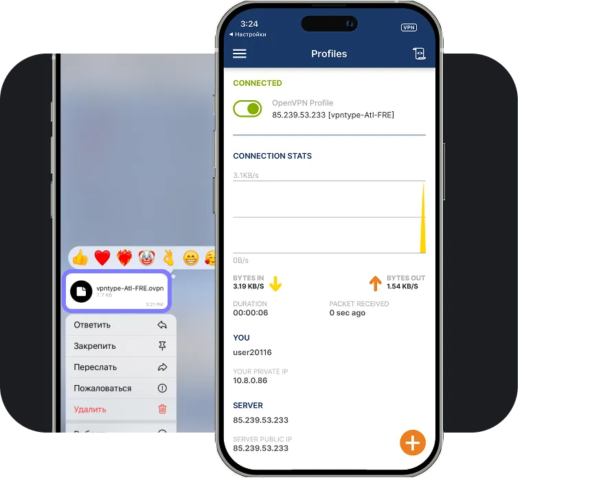 Подключить VPN с помощью ключа конфигурации очень просто. Пожалуйста, внимательно следуйте инструкции. Процесс займет не более 2 минут.